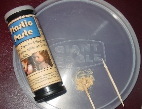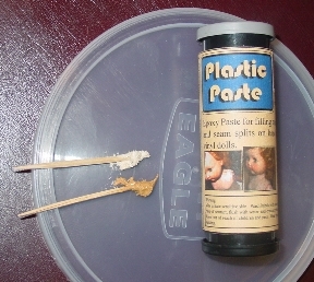 With toothpicks I take out equal amounts of Plastic Paste from each side of the container. |
