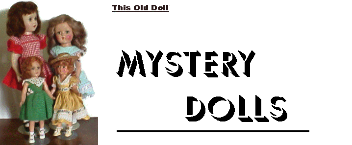 Dear Gail, | The head is definitely molded vinyl and the body probably stuffed vinyl. The early magic skin babies were latex rubber stuffed with cotton batting but because of the vinyl head, I'll bet the body is also stuffed vinyl. The squeaker is probably why she's in such great shape. The air would be able to get under the skin. Dolls that were sealed trapped moisture from a pin hole or break in the "skin" and the moisture promoted a black mold that looked like a bruise. I'd guess she's from the mid 50s to the early 60s. So, does anyone have one of these or remember having one? Maybe you know her name? |